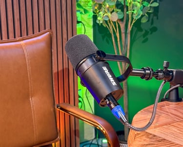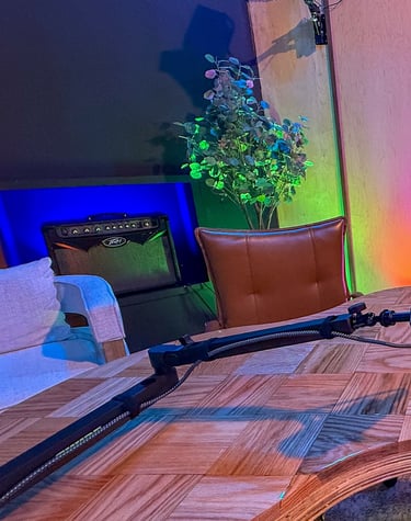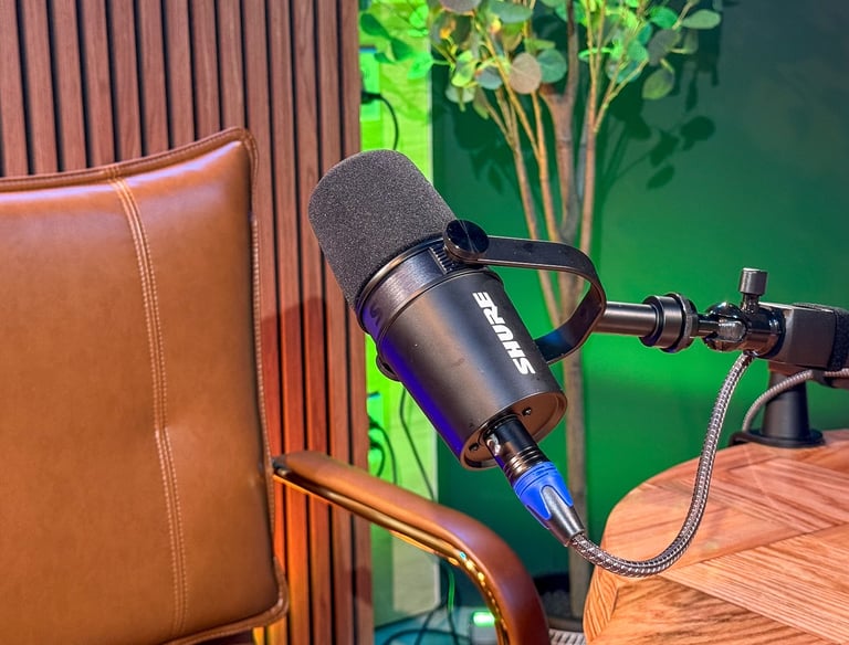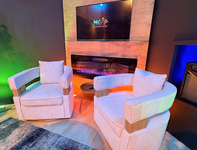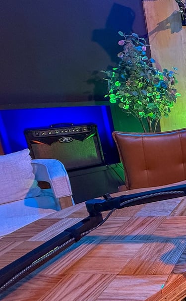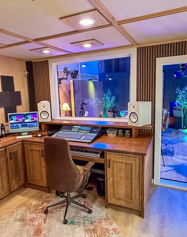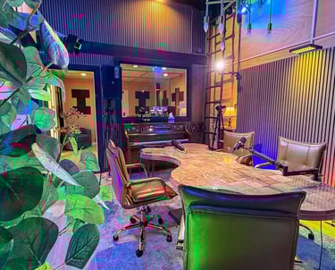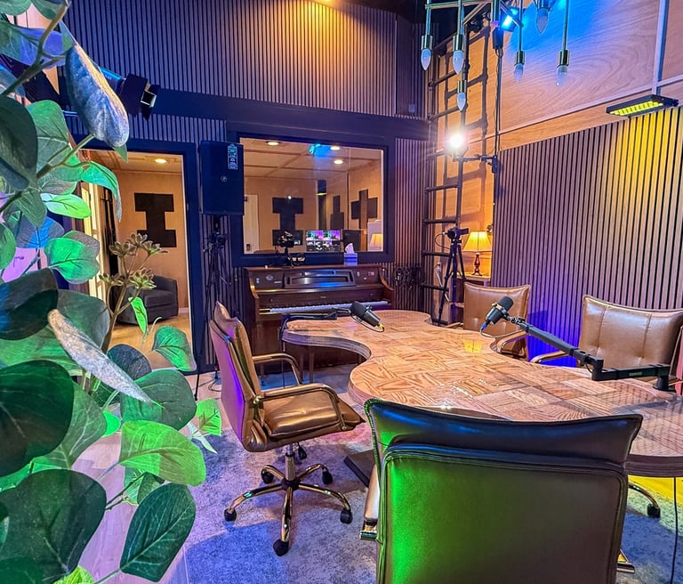 A creative studio for podcasts, music, and video production, offering high-end equipment and expert support to elevate your content.